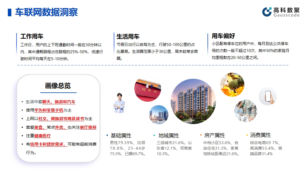 同时,全面打通车主人群的居住空间、驾驶出行空间、工作出行空间、生活出行空间,实现“四维空间”的数据连通是实现“数智”的基础。在此基础上,我们进一步深入挖掘数据价值,将各个场景数据相互关联,构建起一个全面、立体、多维度的数据体系。